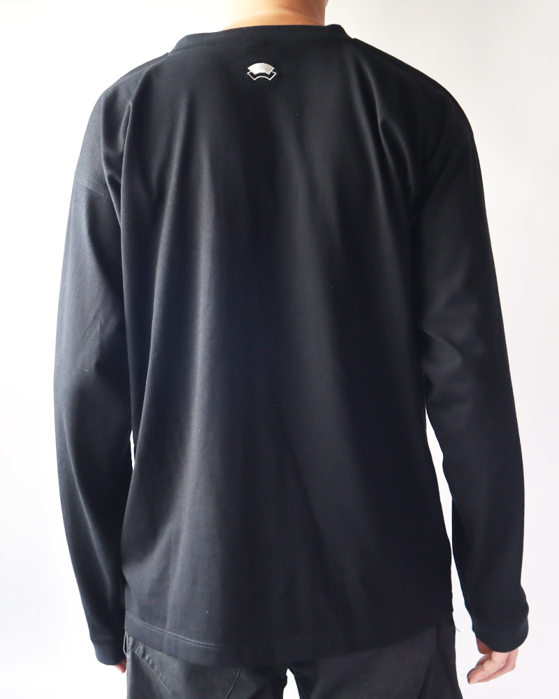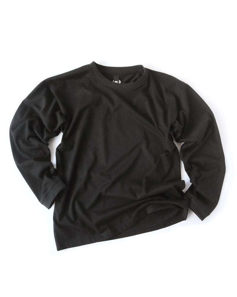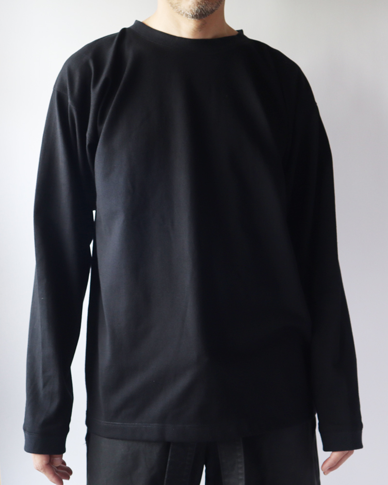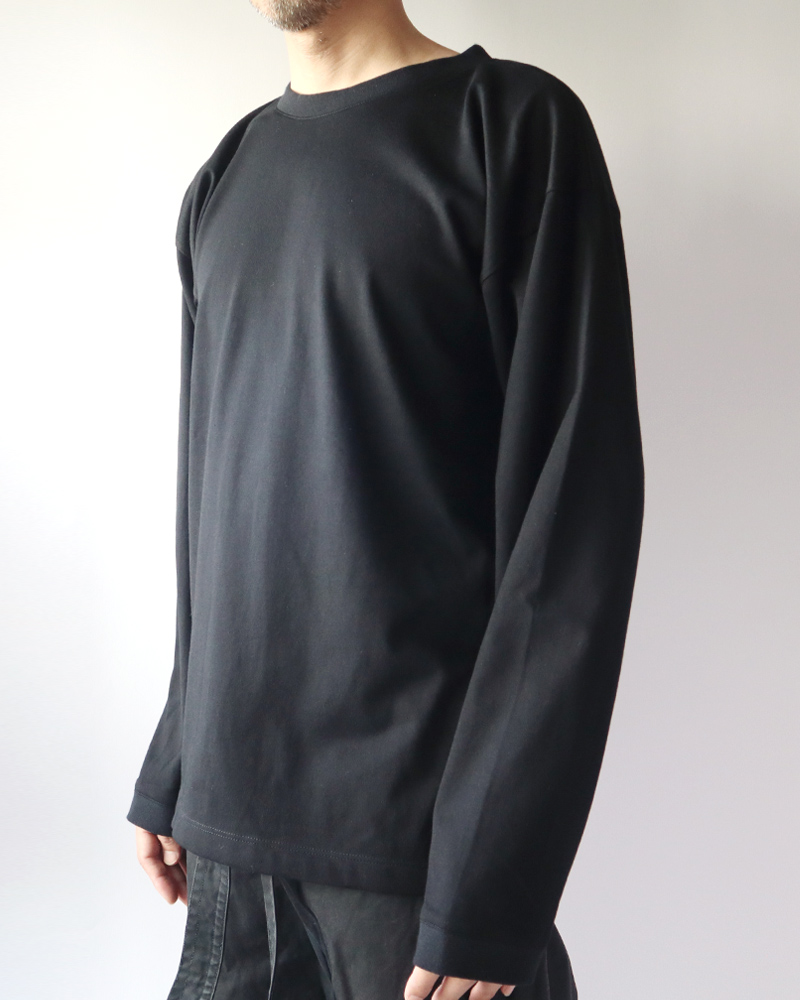 肌触りの良い肉厚な綿素材を使用した長袖カットソー。身体の輪郭をあまり強調しない直線的で大振りな寸法取りはゆったりとしたシルエットを作り出している。長めの袖の脱力感と絶妙な開きの丸首が程良い色気を演出している。